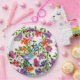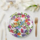 Whimsikmutige Blume und Schmetterlinge rund um ein blaues Vogelbad. Feminine Airy und delikate Blues, Pink, Püree, Gelb, Grüntöne, alle Ihre Lieblingsfarben für Ihre Lieblingsfarben Ansammlungen! Maßgeschneiderte personalisierte Party-Teller für jeden Anlaß. Das Watercolor Designbild stammt aus der Designerkollektion. Genießen Sie die Koordination Ihres Party-Ensembles, um Ihr eigenes Thema auszudrücken. Wenn Sie etwas Besonderes gewollt haben, kontaktieren Sie mich bitte unter sue.chorney@shaw.ca.