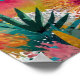 Ein lebendiges und abstraktes botanisches Gemälde mit einer Vielfalt an stilisierten Pflanze und Formen. Das Kunstwerk ist voll mit fett gesättigten Farben, darunter Rosa-, Orange-, Gelb-, Grün- und Blautönen. Die geometrischen Formen haben große, übertriebene Blütenblätter mit komplizierten Mustern, während die Blätter in verschiedenen Formen und Größen dargestellt werden, was eine üppige, vielschichtige Wirkung ergibt. Der Hintergrund umfasst eine Mischung aus kräftigen Farben, Farbenwaschs und spielerischen Polka-Punkten, die Tiefe und Kontrast erhöhen. Schönes Wandkunstgeschenk für jede Anlässe.