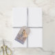 Weihnachtsgeschenk-Tag mit einem Foto eines wunderschönen weißen Pferdes. Laufen durch ein schneebedecktes Feld. Majestätisch und schön.