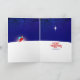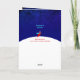 Rote Krähe mit einer goldenen Krone und blauer Schal, die einen fernen Stern sehen. Innen: "Frohe Weihnachten...aus der Entfernung"