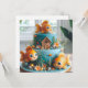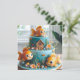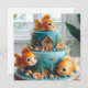 FESTIVER GROSSER MIT AUGEN GOLDFISCH AUF EINEM GEBURTSTAGSPIEGEL AN DER VORDERSEITE DER KARTE. KOMPLETT BEARBEITBARE KOPIE AUF DER RÜCKSEITE.