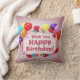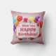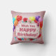 Ein gemütliches und fröhliches Kissen mit der Phrase "Wish You Happy Birthday" in lebhaften, kühnen Buchstaben. Das Design präsentiert eine festliche Anordnung von bunten Ballons, Bändern und Blume vor einem weichen rosa Hintergrund mit sanftem Buh-Effekt. Dieses dekorative Kissen verleiht jedem Geburtstag eine Touch von Feiern und Freude!