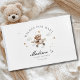 Feiern Sie die bevorstehende Ankunft Ihres Kleinen mit unseren bezaubernden "Wünsche für Baby! " Baby Dusche Gästebuch. Dieses individuell gestaltbare Gästebuch mit einem charmanten Teddybär in einem Vintagen Flugzeugdesign ist der perfekte Ort, um Ihre Wünsche, Ratschläge und Liebe zu erleben. Wählen Sie aus 7 schönen Farbvarianten, die zu Ihrem Duschthema passen - von sanften Neutralen über pastellfarbene Blues bis hin zu Pinks. Die Frontabdeckung und die Wirbelsäule sind vollständig editierbar, sodass Sie den Namen, das Datum und die speziellen Details individuell festlegen können. Ob Sie eine moderne, klassische oder skurrile Babydusche planen, dieses Gästebuch ist eine schöne und sinnvolle Ergänzung zu Ihrem Fest. Ein zeitloser Sake für Ihr Baby, um eines Tages Schatz zu erhalten.