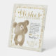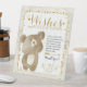"Oh Baby the World Awarits" Kombi-Thema in einer getappten goldenen Typografie. Adorable Teddybär, der über Wünsche und Vorhersagen nachdenkt. Tabletop-Zeichen für Vorhersage und wünscht Kartenrichtung.