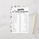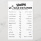 Fügen Sie Ihrem Brautparty, Ihrem Junggeselinnen-Abschied oder Ihrer Hochzeitsfeier Aufregung und Lachen hinzu mit diesem Hochzeitsspiel "Würde sie lieber sein?"! Die Gäste werden die Vorlieben der Braut schätzen - Liebe sie Strandbäder oder glanzt, schokolade oder Vanille, bleibe Zuhause oder tanzt bis zum Morgengrauen? Dieses Spiel ist in einem schicken Schwarzweiß-Layout mit eleganten Verlobung-Ringakzenten gestaltet und eignet sich hervorragend für Party, Paarduschen und Hochzeitsfeiern. Ein Muss, um vor dem großen Tag lustige Erinnerungen zu schaffen! Individuell anpassbar - fügen Sie Ihren persönlichen Spin für Ihre kommende Veranstaltung hinzu! 📌 Perfekt für: ✔️ Hochzeitsempfang & Cocktail-Stunden ✔️ Brautparty & Junggeselinnen-Abschiede ✔️ Engagement Parties & Probe Dinners ✔️ Gasttisch-Aktivitäten & Icebreak-🎉 Vollendung der Kollektion! Pair diese Hochzeitswortsuche mit unseren anderen passenden Hochzeitsspielen für ein zusammenhängendes und stilvolles Eventerlebnis.