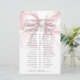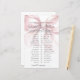 Dieses Girly und Niedliche Coquette Style Brautparty Spiel - würde sie lieber. Fügen Sie Ihrem Brautparty eine spielerische Aktivität hinzu, bei der die Gäste erraten, welche Option die zukünftige Braut für eine Reihe von lustigen Fragen zu "Würde sie lieber" wählen würde. Es ist eine leichtsinnige Art, bei der Feier ihr Gespräch und Lachen zu entfachen. Das Design ist mit einem übergroßen, rot-rosa Bogen versehen, der das Rampenlicht stiehlt, gepaart mit dem Satz "Sie bindet den Knoten!" in einer schicken Kombination aus handgeschriebenen schwarzen und klassischen Serif-Schriftart. Die Typografie verleiht dem Coquette Charme, indem sie anmutige Schrift mit zeitlosem Serifentext für einen femininen und stilvollen Look verbindet. Vollständig anpassbar, können Sie die Fragen, Schriftart-Farben und Hintergrund bearbeiten, um Ihr Brautparty-Thema zu passen. Diese Aktivität verleiht jedem Fest eine süße und spielerische Touch.