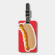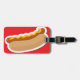 Eine stilisierte Illustration eines Würstchens mit Senf auf einem roten Hintergrund.