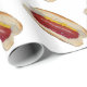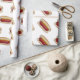 Würstchen auf einem Brötchen mit Senf- und Ketschup-Packpapier