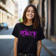 Dieses T-Shirt sagt Spicey in leuchtend rosa grungy Buchstaben.