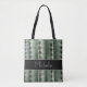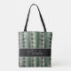 Stilvolle Totentasche aus der Wüste, mit grünem Saguaro-Kakteen-Hintergrund und schwarz-weißem Rand. Mit weißen Typografie-Buchstaben können Sie mit Ihrem eigenen Namen personalisieren. Ein modernes Accessoire für unterwegs.