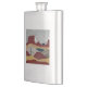 Eine abstrakte Landschaft mit einzigartigen Farben und Texturen, die eine Wüstenlandschaft mit aufsteigender blauer Sonne und einem Kakteen in Rot, Grau, Beige und Blau zeigt.