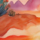 Aquarellkaktus in der Wüste mit einer schönen Sonnenuntergang Tapete.