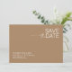 Die Stücke in dieser Hochzeitsaufstellungssuite sind für diejenigen gedacht, die Einfachheit mit einem Hauch von Erdnuss Liebe haben. Sie sind Set gegen trockene Hintergründe in einer ruhigen Farbpalette, die mit den minimalistischen Designelementen harmoniert, darunter die schlichte Darstellung der Wüstenflora - eine gedämpfte Note zur stillen Pracht der Wüste. Die markante, horizontale "Save the Date" Karte, die hier gezeigt wird, hat eine Vorlage, um leicht Ihren eigenen personalisierten Text hinzuzufügen. Suchen Sie den ID1019 um alle Produkte in dieser Hochzeitssuite zu sehen.