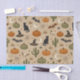 Ein warmes, südwestlich inspiriertes Halloween-Wiederholungsmuster, das klassische gruselige Motive mit Charme der Wüste verbindet. Erdtöne-Kürbisse in gedämpftem Orange und Salbei-Grün sind unter schwarzen Katzen, Mondsicheln, Fledermäusen, Hexenhüten, Spinnen, Spinnennetzen und kleinen Sternen verstreut, neben Kakteen, Wüstenpflanzen und subtilen Totenkopf-Akzente. Vor einem sandigen, sonnengewaschenen Hintergrund mit einer weichen körnigen Textur wirkt das Design rustikal, gemütlich und atmosphärisch statt gruselig. Die Farbpalette aus warmen Sand, Ton-Orangerot, Olivgrün, Holzkohle und weichem Creme verleiht dem Muster eine ruhige, herbstliche Wüsten-Nacht-Stimmung.