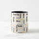 Danke für die erste Tasse Ihres Lieblingsgetränks jeden Morgen? Teilen Sie diesen Dank in dieser Tasse entworfen mit einer wüstenschwarz-beige Typografie mehrsprachige "Danke" Wort Cloud in einer Vielzahl von Schriftart über weiß.