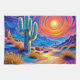 Tauchen Sie ein in das lebhafte Glühen eines wüsten Sonnenuntergangs. Dieses atemberaubende Gemälde erfasst die ruhige Landschaft mit einer Touch von verträumter Kunst (Dieses Design aus KI). Bestellen Sie noch heute und Embrace the Joy of Shopping!
