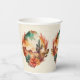 Papiertassen mit einer schönen bemalten Abbildung. Grüne Kakteen und braune Berge mit orangefarbenen Wüsten-Blume. Landschaftliches hübsches südwestliches Design.