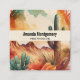Visitenkarten mit einer schönen bemalten Abbildung. Grüne Kakteen und braune Berge mit orangefarbenen Wüsten-Blume. Landschaftliches hübsches südwestliches Design.