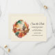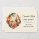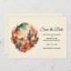 Save the Date Karte mit einer schönen bemalten Abbildung. Grüne Kakteen und braune Berge mit orangefarbenen Wüsten-Blume. Landschaftliches hübsches südwestliches Design.