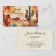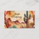 Visitenkarten mit einer schönen bemalten Abbildung. Grüne Kakteen und braune Berge im Hintergrund. Landschaftliches hübsches südwestliches Design.