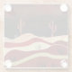 Abstrakte Landschaft einer Wüste mit Saguaro-Kakteen, Peeling-Pinsel, Hügeln und Sternen in Rot-, Crimson-, Beige- und Fetttönen.