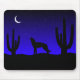 Atemberaubende Digitalkunst mit einer Nachtwüstenszene mit Kakteen und einem Coyote-Howling auf dem Mond.