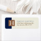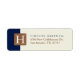 Stark marineblau und sandfarbene offweiße Adressetiketten.