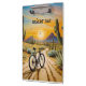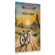Sonnenuntergangsmalerei eines Fahrrads in der Wüste, umgeben von Kakteen