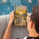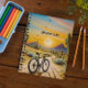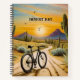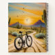 Sonnenuntergangsmalerei eines Fahrrads in der Wüste, umgeben von Kakteen