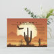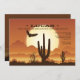 Diese golden-braune Einladung kennzeichnet die Silhouette eines Falken und der Wüstenlandschaft gegen eine große Sonne. Sie ist für jede mögliche Feier mit einem Westernthema perfekt. Entwurf durch Vecteezy Wüsten-Szenen-Illustration.