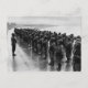 Die Krankenschwestern stellten sich hintereinander in vollem Gang auf und trugen Gasmasken.