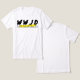 This minimalist shirt design features bold "WWJD" lettering and elegant cursive text that reads *"What Would Jesus Do"* with a bright yellow highlight cutting through — a symbol of light, empathy, and clarity in a divided world.