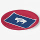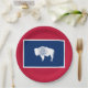 Dieses Design verfügt über die Staatsflagge von Wyoming, einem doppelt Binnenland-Staat im Western United Staaten. Es ist der zweitbevölkerungsreichste Staat des Landes. Wyoming grenzt im Norden an Montana, im Osten an South Dakota und Nebraska, im Süden an Colorado, im Südwesten an Utah und im Westen an Idaho und Montana. Der offizielle Spitzname von Wyoming ist "Equality Staat", aber manchmal auch bekannt als "Cowboy Staat" oder "Big Wyoming". Wyomings Western wird größtenteils von den Gebirgszügen bedeckt, während die östliche Hälfte des Staat die Hochebene ist. Der Yellowstone Nationalpark liegt teilweise im Wyoming und der Grand Teton Nationalpark liegt ganz im Staat. Cheyenne ist die Hauptstadt des Staat und die bevölkerungsreichste Stadt Wyomings. Die Flagge des Staat von Wyoming beinhaltet eine Silhouette eines amerikanischen Bison. Das Rote symbolisiert die Indianer und das Blut der Pioniere, die ihr Leben gegeben haben. Das Weiße ist ein Symbol für Reinheit und Aufrichtigkeit. Das Blau ist die Farbe des Himmels und der fernen Berge.