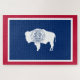 Dieses Design verfügt über die Staatsflagge von Wyoming, einem doppelt Binnenland-Staat im Western United Staaten. Es ist der zweitbevölkerungsreichste Staat des Landes. Wyoming grenzt im Norden an Montana, im Osten an South Dakota und Nebraska, im Süden an Colorado, im Südwesten an Utah und im Westen an Idaho und Montana. Der offizielle Spitzname von Wyoming ist "Equality Staat", aber manchmal auch bekannt als "Cowboy Staat" oder "Big Wyoming". Wyomings Western wird größtenteils von den Gebirgszügen bedeckt, während die östliche Hälfte des Staat die Hochebene ist. Der Yellowstone Nationalpark liegt teilweise im Wyoming und der Grand Teton Nationalpark liegt ganz im Staat. Cheyenne ist die Hauptstadt des Staat und die bevölkerungsreichste Stadt Wyomings. Die Flagge des Staat von Wyoming beinhaltet eine Silhouette eines amerikanischen Bison. Das Rote symbolisiert die Indianer und das Blut der Pioniere, die ihr Leben gegeben haben. Das Weiße ist ein Symbol für Reinheit und Aufrichtigkeit. Das Blau ist die Farbe des Himmels und der fernen Berge.