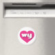 Dieser Magnet ist ein lebendiges, heiß rosa Herz, das die fett, weiß, abgerundeten Kleinbuchstaben wy enthält, eine spielerische Abkürzung für Wyoming, den Cowboy-Staat.