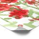 Ein Poster, das mit einem Mehlkersongvogel geschmückt ist, der auf einer Pflanze in einem Stück leuchtend roter indischer Paintbrush-Wildblumen steht, die mit Tinte gezeichnet und mit Aquarellfarbe gestrichen wurden. Inspiriert durch den Staat Vogel und Staat Blume von Wyoming.