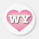 Dieser Magnet verfügt über ein cooles rosa Herz mit einer weiß gekalkten Mitte, die die fett weißen Großbuchstaben WY enthält, die offizielle Abkürzung für Wyoming, den GleichheitsStaat.