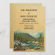 Eine einzigartige Vintage Wyoming Hochzeitseinladung im Stil der Mitte des Jahrhunderts mit einer wunderschönen Naturlandschaft mit Waldbäumen, Schnee und einem Fluss oder Bach, der von einem kleinen Berg fließt. Feiern Sie Ihre Wyoming Hochzeit in Urlaubsort mit dieser charmanten Wyoming Hochzeit einladen. Ideal für Hochzeiten im Camping und für Feiern im Freien.