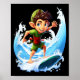 X-mas Christmas Elf Riding Surfboard Surfboard Poster