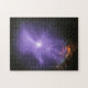 Die "Knochen" einer geistreichen kosmischen Hand werden in diesem zusammengesetzten Bild sichtbar, das aus der Kombination von Daten zweier Röntgenbeobachtungsstellen der NASA entsteht. Die Raumsonde Chandra zeigt Röntgenstrahlen mit geringer Energie in Orange und in Blau und Grün mit höherer Energie. Diffuse lila Bilder stammen aus der Röntgenbeobachtungsstelle von IXPE. Der helle Bereich am Fuß der Hand ist ein Pulsar, ein rotierender Neutronenstern mit einem starken Magnetfeld.
