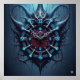 Eine hochqualitative Grafik eines Werkes der Xeno-Kunst, das eine Uhr als seltsamen, lebenden Organismus darstellt. Es ist eine Verschmelzung von mechanischer Zeitmessung und Bio Leben, mit einem pulsierenden roten Kern und einem Netzwerk knochenähnlicher Strukturen. Die gesamte Farbpalette ist eine moodisch wirkende Mischung aus dunkelgrauen, roten und Blues, die dem Ganzen ein bedrohliches, ansonsten weltliches Gefühl verleiht.