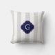 XL Lt Graue, weiße Streifen Navy Quatrefolienmonog Kissen