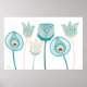 XL Turquoise Aqua Vintage Funky Blume Art Poster