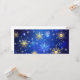 Blauer Weihnachtsgebirge mit goldenen und weißen Schneeflocken. Goldene Schneeflocken. XMAS.