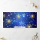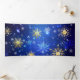 Blauer Weihnachtsgebirge mit goldenen und weißen Schneeflocken. Goldene Schneeflocken. XMAS.