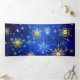 Blauer Weihnachtsgebirge mit goldenen und weißen Schneeflocken. Goldene Schneeflocken. XMAS.