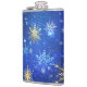 XMAS Blue Background mit goldenen Schneeflocken Flachmann