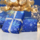 XMAS Blue Background mit goldenen Schneeflocken Geschenkpapier