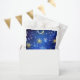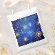 XMAS Blue Background mit goldenen Schneeflocken Geschenktütchen