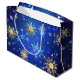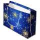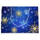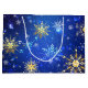 XMAS Blue Background mit goldenen Schneeflocken Große Geschenktüte